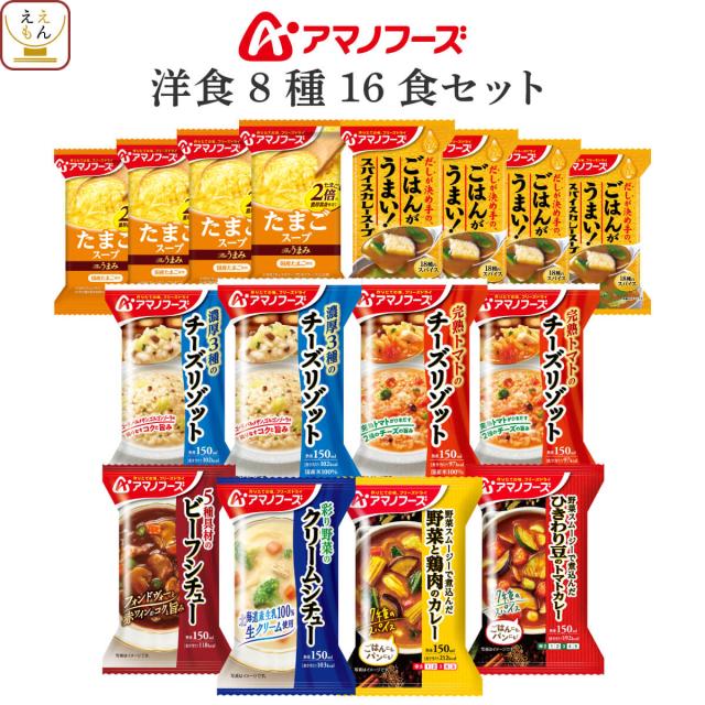 母の日 アマノフーズ フリーズドライ 洋食 8種16食 詰め合わせ セット 【 送料無料 沖縄以外】 インスタント スープ 野菜 カレー チーズ リゾット シチュー 即席 洋風 惣菜 ご飯のお供 常温保存 食品 備蓄 保存食 2026 新生活 内祝い ギフト