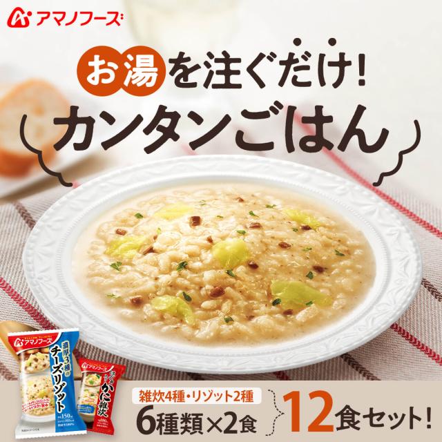 アマノフーズ フリーズドライ 雑炊 リゾット 6種12食 詰め合わせ セット 【 送料無料 北海道沖縄以外】 即席 ご飯 国産 米 使用 海鮮 魚介 ぞうすい トマト チーズリゾット インスタント食品 ホワイトデー 2026 母の日 ギフト