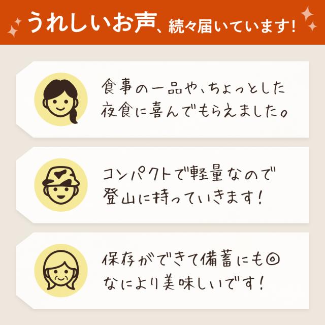 アウトドア キャンプ 登山 や 一人暮らし 単身赴任 高齢者 子供 への 食べ物 仕送り 常備食 ローリングストック に 朝ごはん ランチ お弁当 夜食 や ご飯のお供 にも。