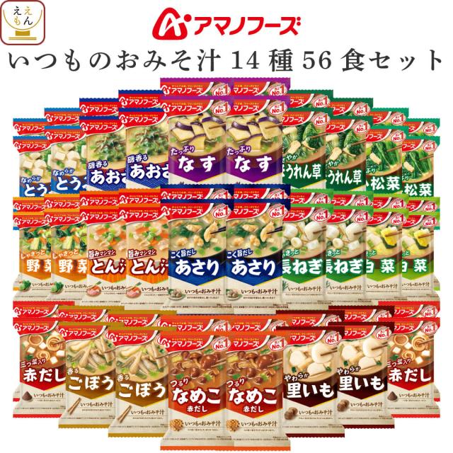 アマノフーズ フリーズドライ 味噌汁 いつものおみそ汁 14種56食 詰め合わせ セット 【 送料無料 沖縄以外】インスタント食品 常温保存 即席みそ汁 お味噌汁 なす 野菜 なめこ 赤だし 備蓄 非常食 保存食 ホワイトデー 2026 母の日 ギフト