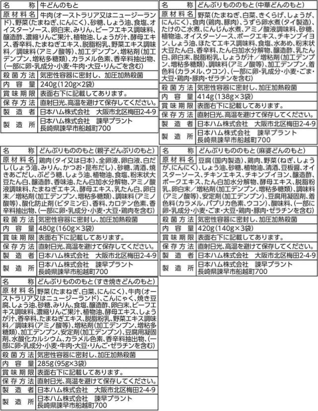 | リニューアル内容 | 4セットから選べる丼の具5袋から、丼の具全種5袋セットにリニューアルしました。 |