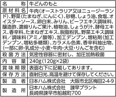 | リニューアル内容 | どんぶり繁盛 牛丼の具が (1袋 3食入)から(1袋 2食入)になりました。 |