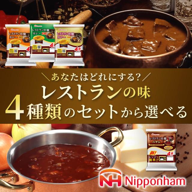 レトルト食品 詰め合わせ 常温 4種類の セット から 選べる カレー ハヤシ 4袋 【 送料無料 北海道沖縄以外】 日本ハム レトルト 惣菜 レンジ 湯煎 レトルトカレー 甘口 中辛 辛口 ハヤシライス 仕送り 食品 お年賀 2026 帰省 お土産 ギフト