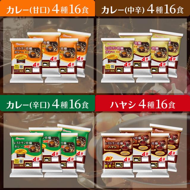 ■ 甘口カレー4袋16食セット ▽レストラン仕様 (1袋 4食入) カレー 甘口 170g ×4 ■ 中辛カレー4袋16食セット ▽レストラン仕様 (1袋 4食入) カレー 中辛 170g ×4 ■ 辛口カレー4袋16食セット ▽レストラン仕様 (1袋 4食入) カレー 辛口 170g ×4 ■ ハヤシ4袋16食セット ▽レストラン仕様 (1袋 4食入) ハヤシ 135g ×4 4種類のセットからお選びいただけます。 |