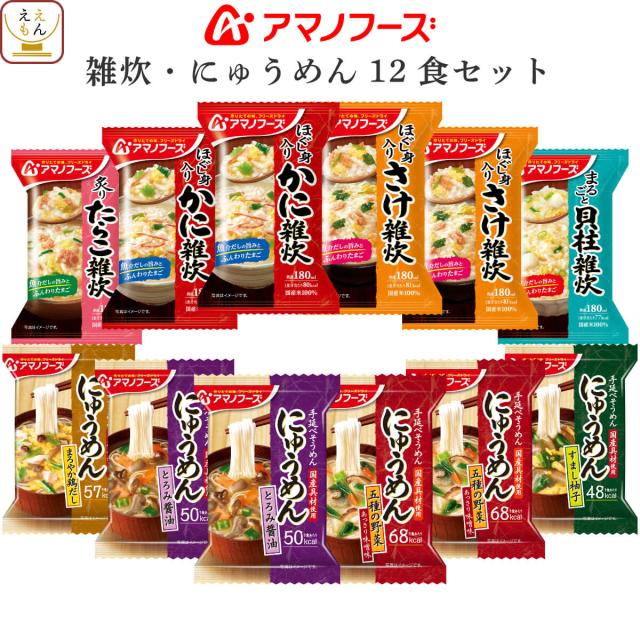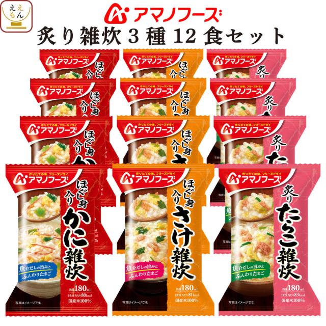 アマノフーズ フリーズドライ 雑炊 4種12食 詰め合わせ セット 【 送料無料 北海道沖縄以外】 即席 ご飯 海鮮 ぞうすい かに さけ たらこ 貝柱 国産 米 ごはん 惣菜 和食 インスタント食品 ホワイトデー 2026 母の日 ギフト