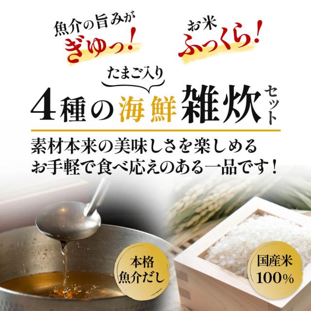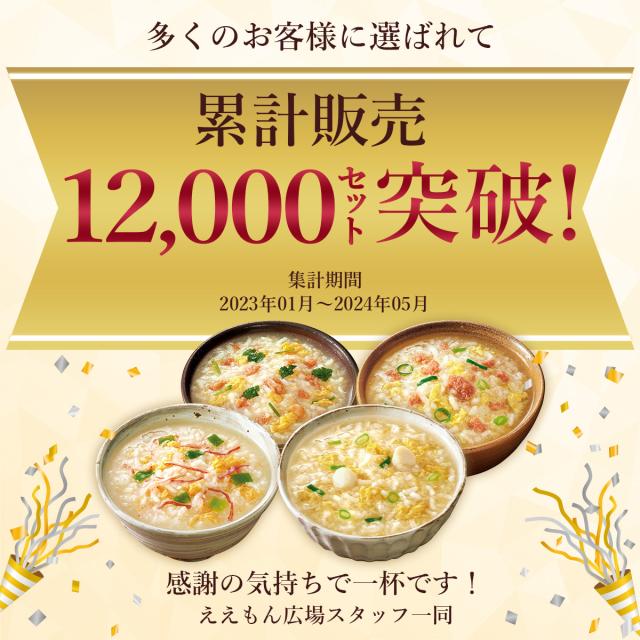 | 内容量 | ■ 雑炊 ほぐし身入り かに雑炊 ほぐし身入り さけ雑炊 炙り たらこ雑炊 まるごと 貝柱雑炊 4種 各3食 合計12食 |