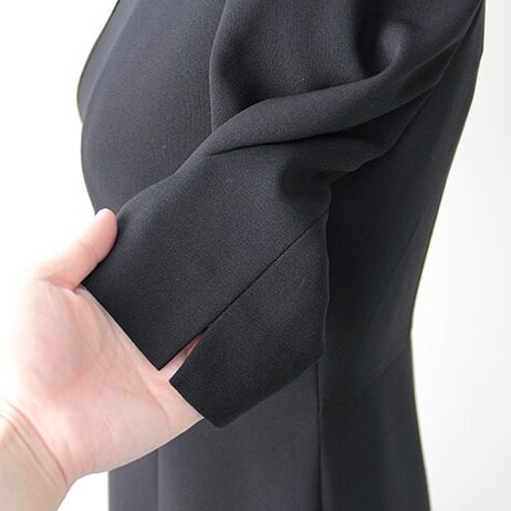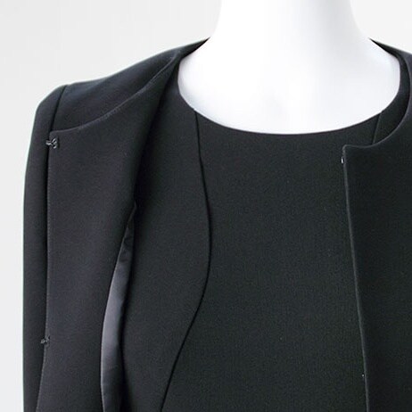 ソリテールのカットワークデザイン ノーカラーシンプルアンサンブル レディース喪服・礼服(ブラックフォーマル)