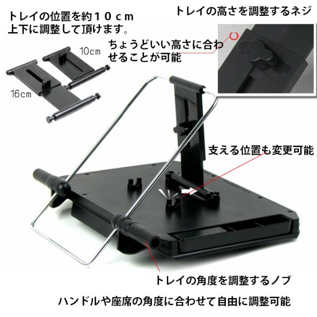 ※車内でノートパソコンも使用可能、今まで膝の上でパソコン操作していた人には最適、ぱっと簡単に設置出来るので、営業等での移動中でもパソコン操作が楽々。