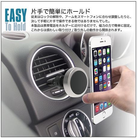 スマートフォンを素早く着脱できるマグネット式スマートフォンホルダーです。