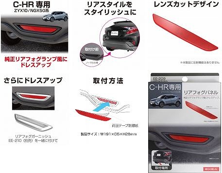 別売のC-HR専用リアフォグガーニッシュ(EE-210)と併用できます。