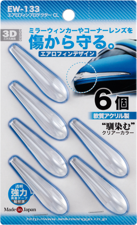 エアロフィンプロテクター クリア Protector エアロフィンデザインのプロテクター スタイルを崩さないコンパクトな透明素材(クリア) 3M製強両テープで貼付け(6個1セット) 製品サイズ:H12×W15×D60 パッケージ:H180×W110×D13 47g 品番:EW-133 ※画像はイメージです。 ※パッケージ、仕様、品番などの変更が予告なく変更される場合が御座います。 カテゴリー |