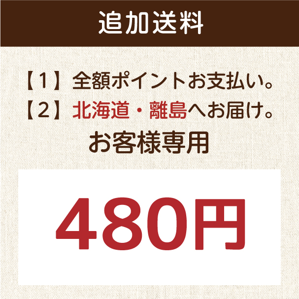 全額ポイントお支払いで配送先が「北海道」「離島」のご住所のお客様は、こちらのオプション追加送料もご一緒にカゴに入れて下さい。