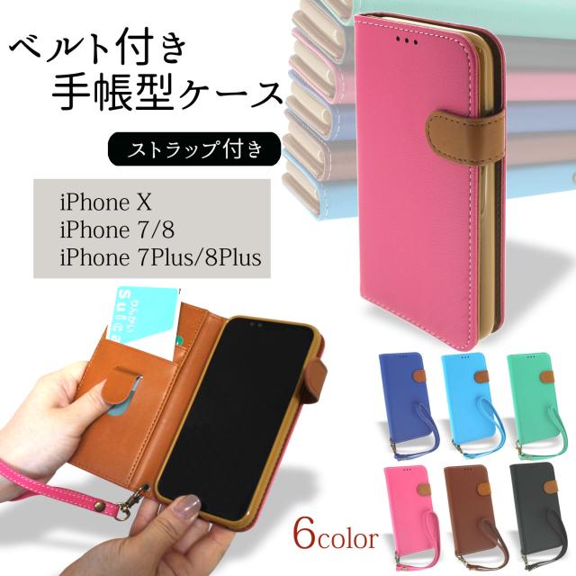 アウトレット 訳あり 在庫処分 手帳型 レザー調 ストラップ付き ケース ベルト 2トーン 6色 iPhoneSE 第3世代 第2世代 iPhoneXS iPhone8 iPhone7 iPhone8Plus 7Plus 手帳型ケース シンプル スリム カバー iphone アイフォン テン アップル APPLE