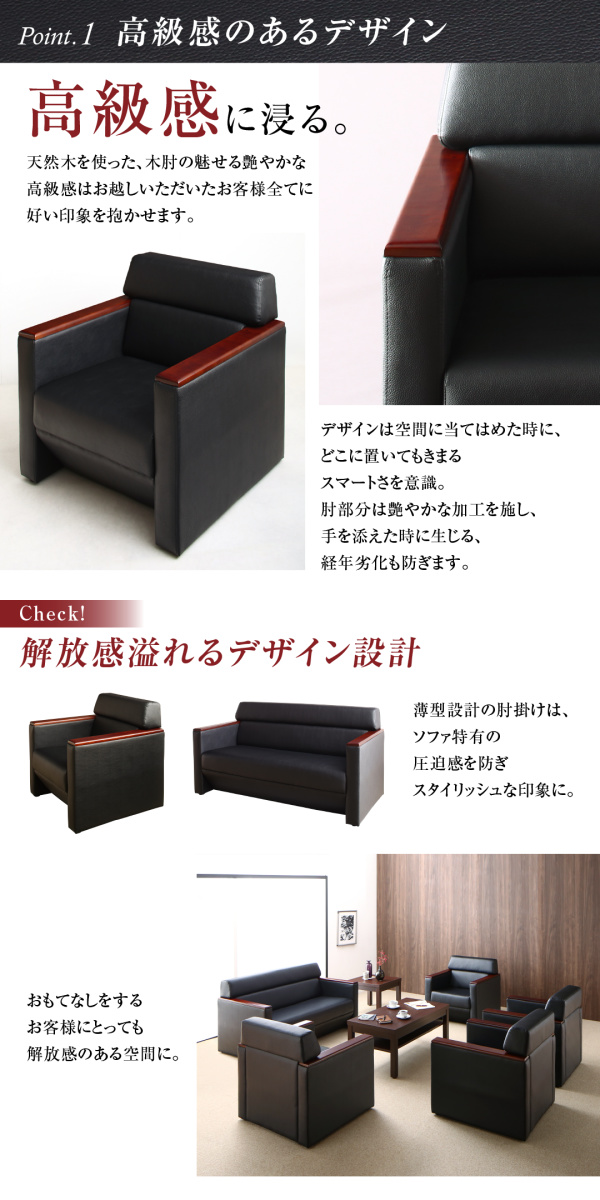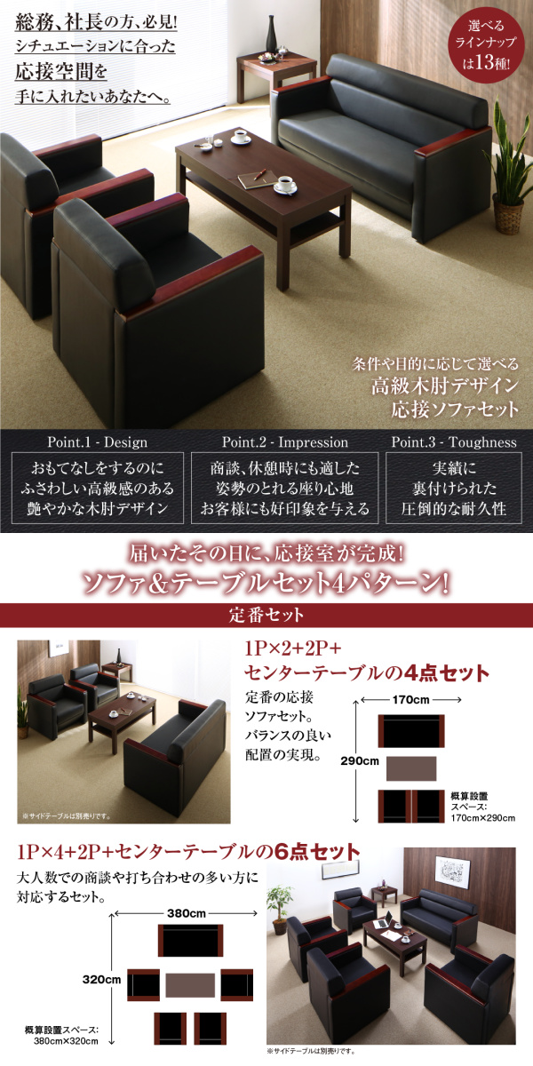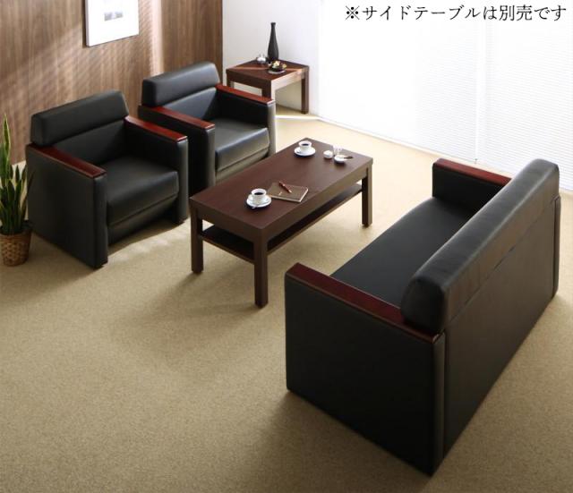 高級木肘デザイン応接ソファシリーズ 【Office Grade】オフィスグレード 4点セット ソファ3点(1Pサイズ×2+2Pサイズ)&テーブル