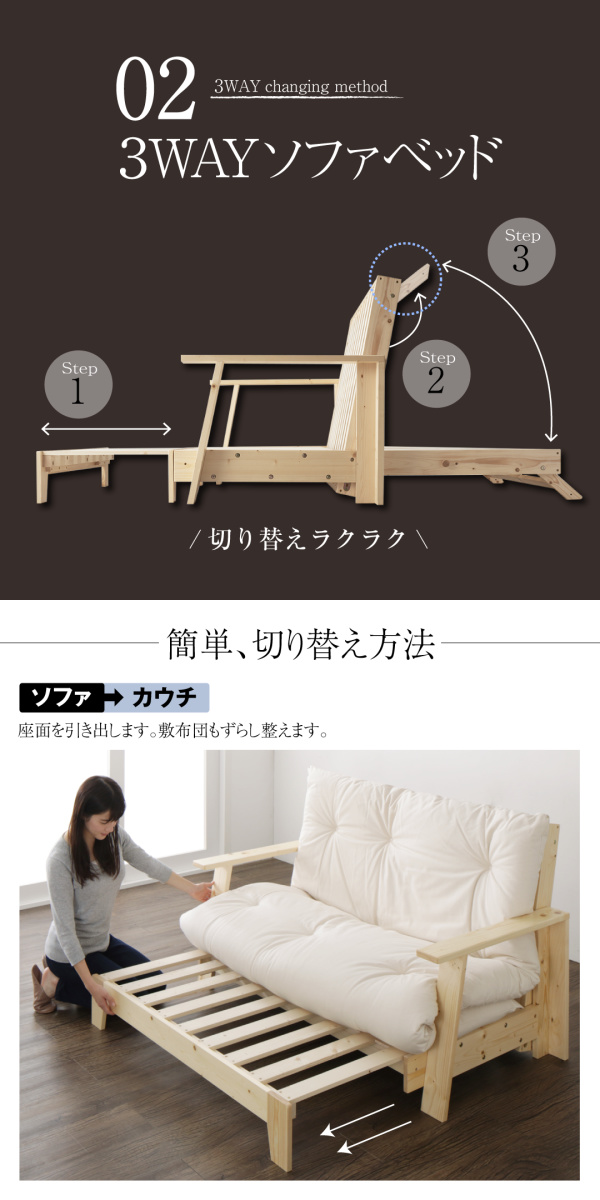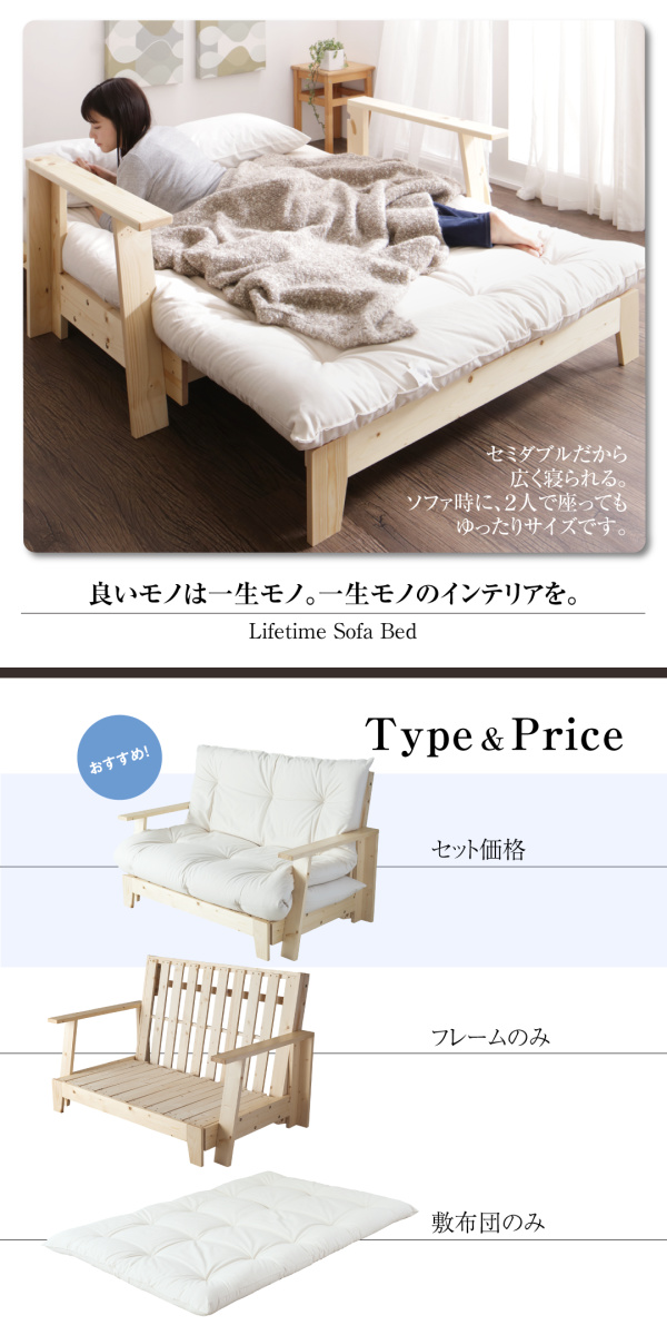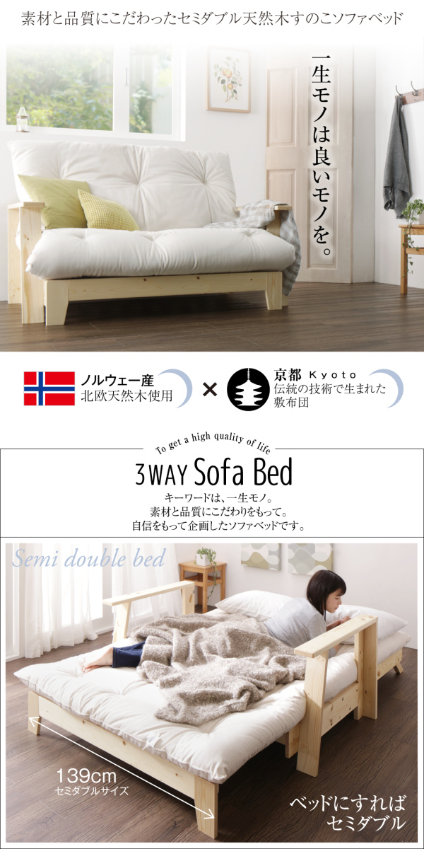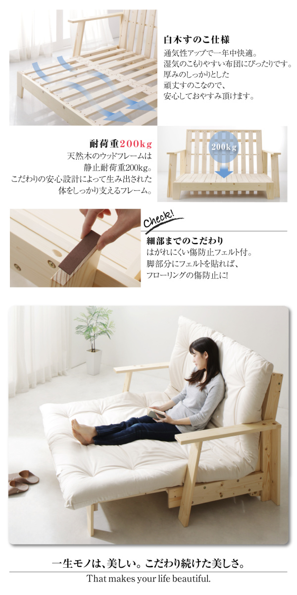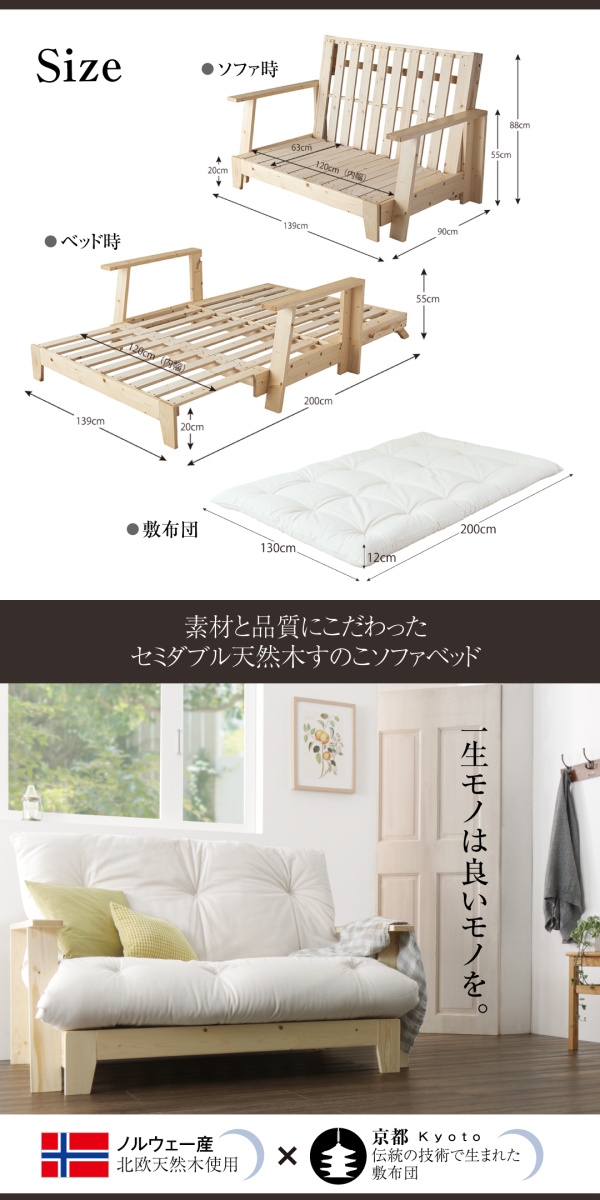 セミダブル天然木すのこソファベッドシリーズ 〔LAXZERIA〕ラグゼリア 〔ベッドフレーム+敷き布団セット〕 140cm 【北海道・沖縄・離島配送不可】
