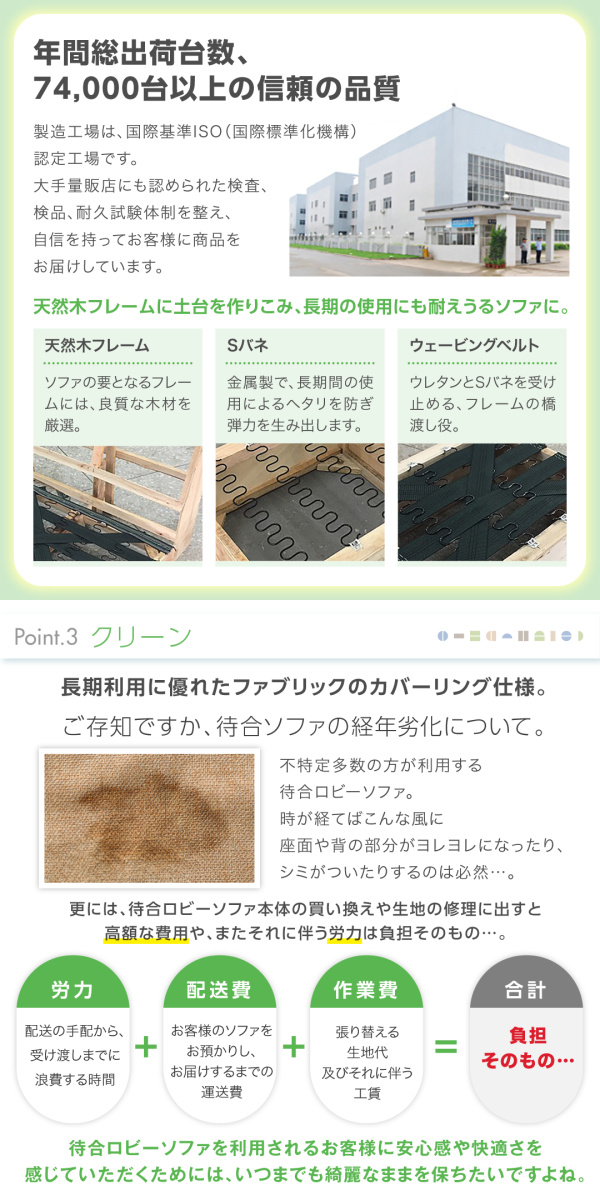 ロビーソファ/待合室/オフィスソファ/カバーリングソファ/ファブリック/布地/2人掛け/二人掛け/2人用
