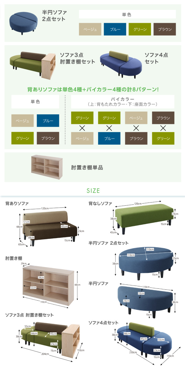 2P:幅120×奥行65×高さ66(38)cm