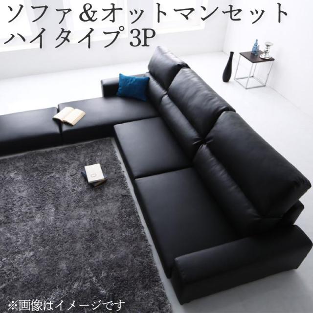 フロアコーナーカウチソファ 【Levin】レヴィン ソファ&オットマンセット ハイタイプ 3Pサイズ ブラック