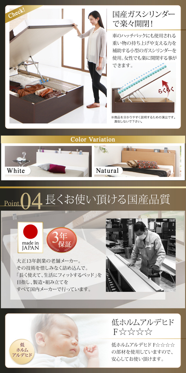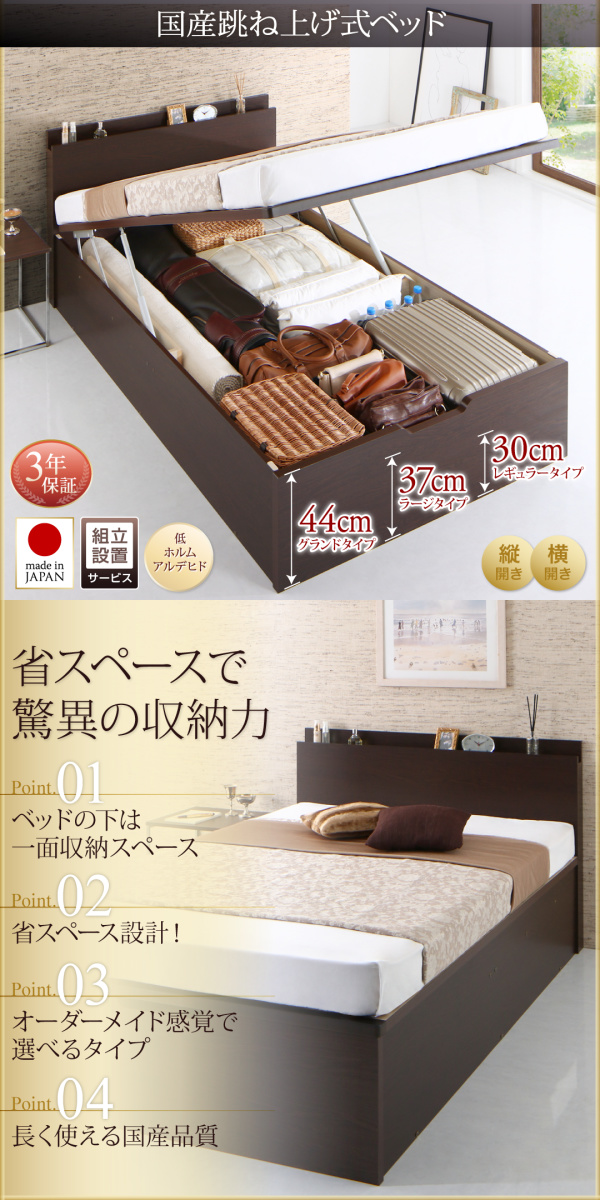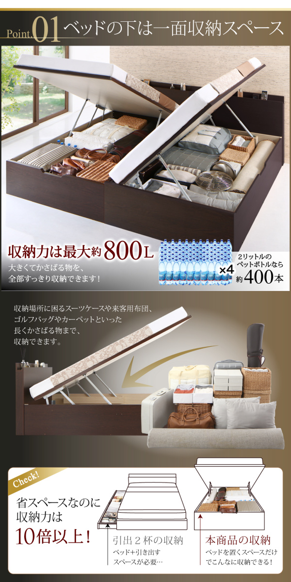 収納ベッド/収納付きベッド/跳ね上げ式/跳ね上げ収納/ガス圧式/大容量/マットレス付き/マットレスセット