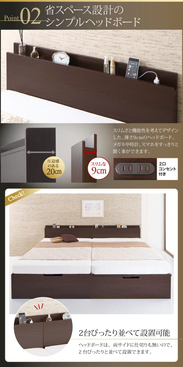 国産 跳ね上げ収納ベッド 〔Renati-DB〕レナーチ ダークブラウン 〔薄型スタンダードポケットコイルマットレス付き〕 縦開き シングル 深さラージ 〔フレーム色〕ダークブラウン 【北海道・沖縄・離島配送不可】