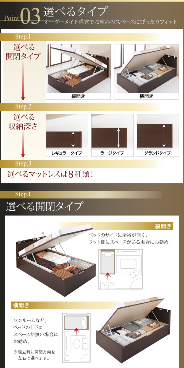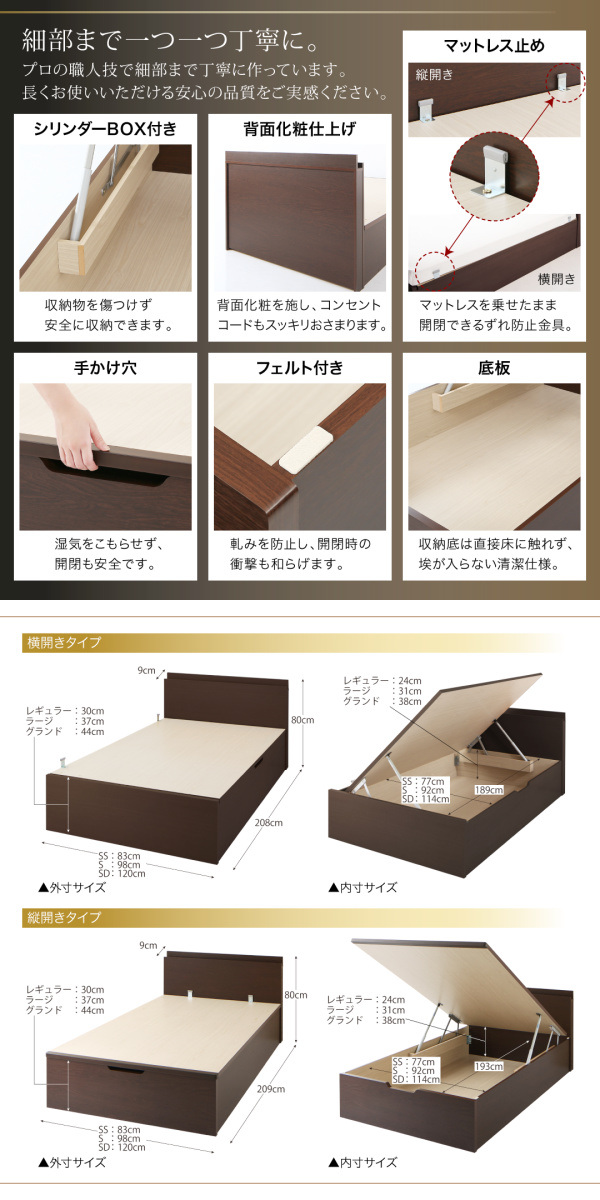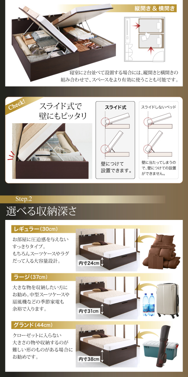 シングル・ラージ・縦:収納部有効内寸:幅92×奥行き193×深さ31cm (×1)