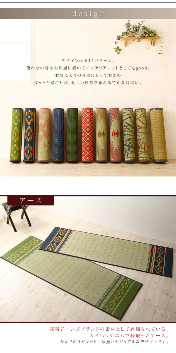 11柄から選べる デザイン国産畳ヨガマット アース 60×180cm グリーン 【北海道・沖縄・離島配送不可】