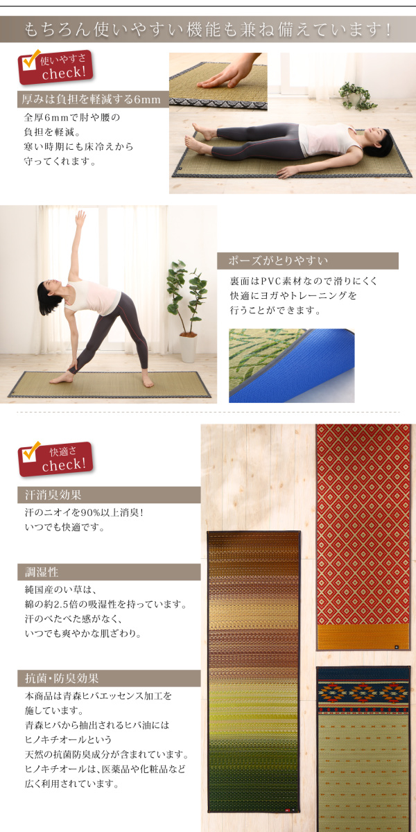 11柄から選べる デザイン国産畳ヨガマット アース 60×180cm グリーン