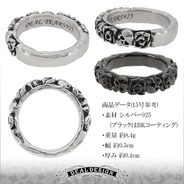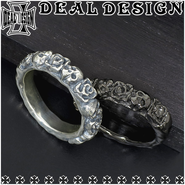 シルバー925 メンズ ユニセックス ブランド DEALDESIGN ロック パンク スカル ローズ バラ ツタ ブラック