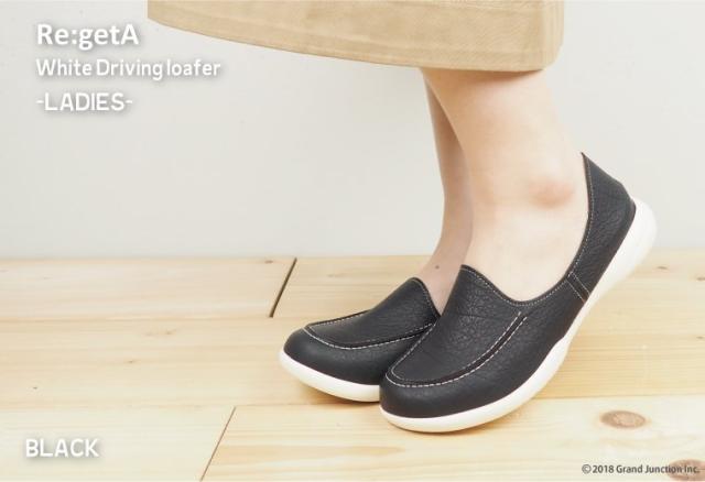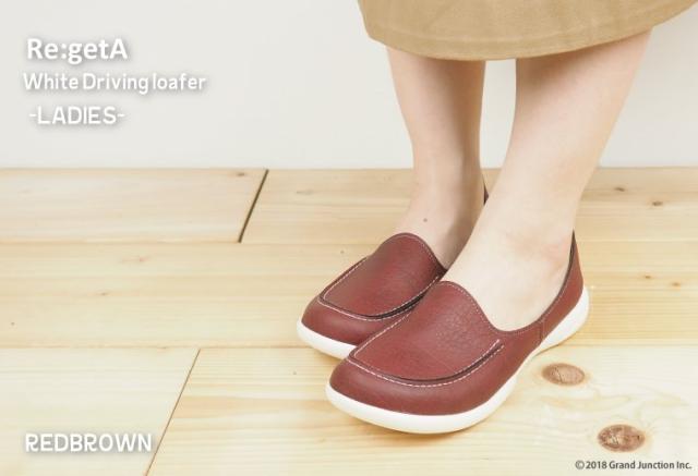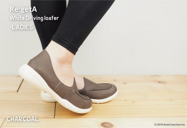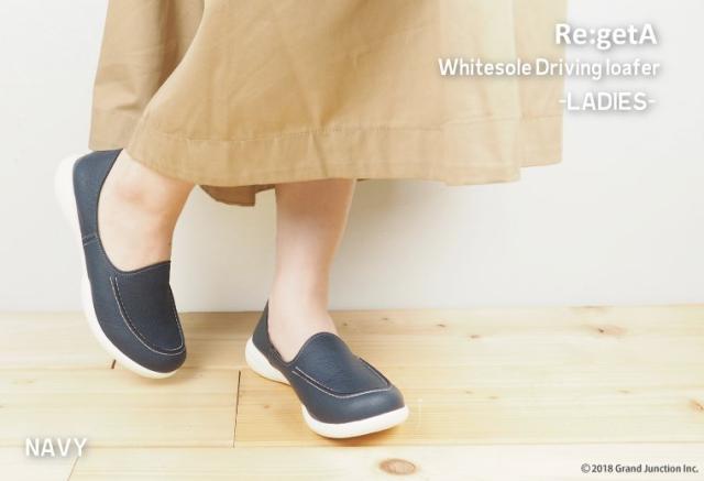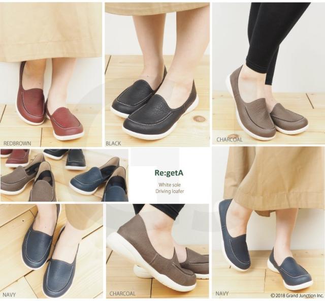 『Re:getA』リゲッタの人気NO.1のドライビングローファーから爽やかで涼し気な印象のホワイトソール版が登場です!ソールに合わせた白のステッチもポイントです!