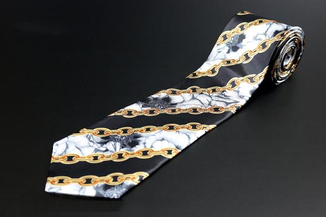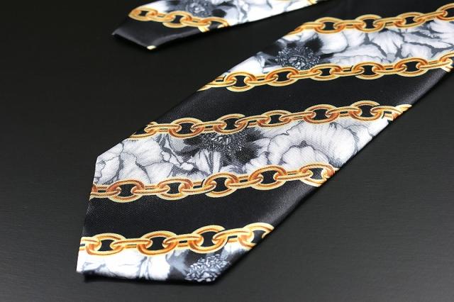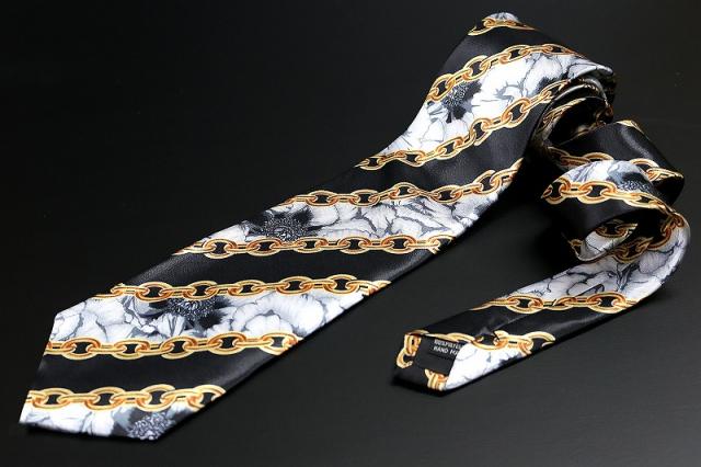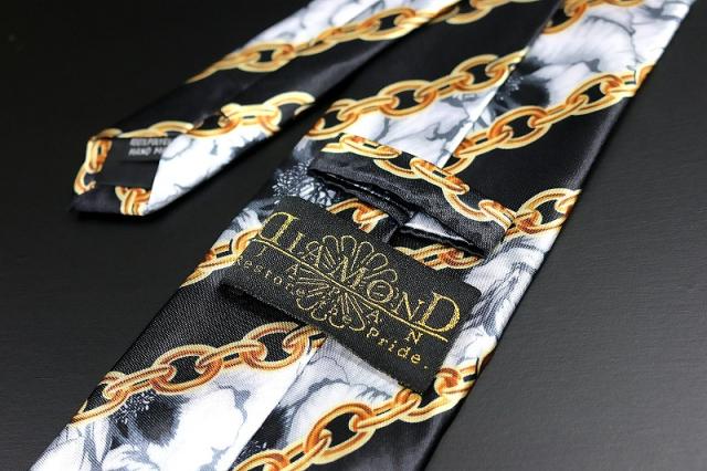 白 牡丹×ストライプチェーン ネクタイ ヤクザ ヤンキー オラオラ 悪羅悪羅 メンズ 紳士 バロック柄 058 レア 派手 お兄系 ホスト メンナク チョイ悪 悪党の店 バースジャパン BIRTHJAPAN