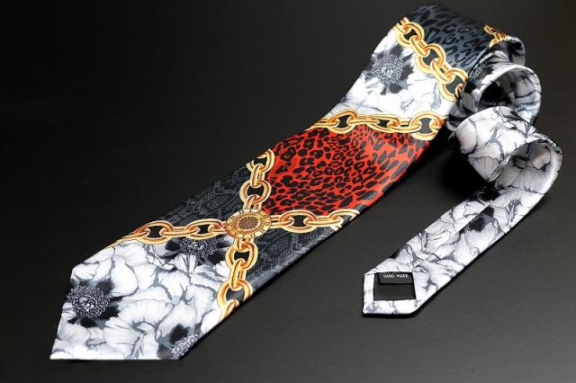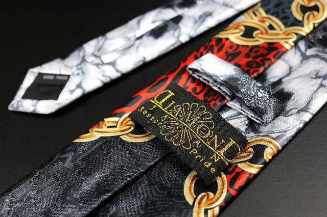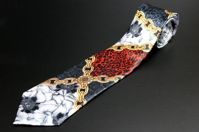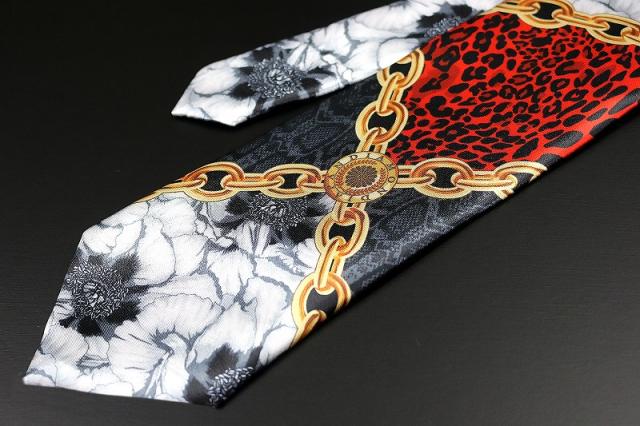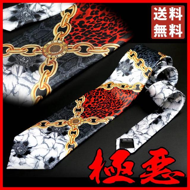 白 牡丹×クロスチェーンMIX ネクタイ ヤクザ ヤンキー オラオラ 悪羅悪羅 メンズ 紳士 バロック柄 059 激レア 派手 お兄系 ホスト メンナク チョイ 悪党の店 バースジャパン BIRTHJAPAN