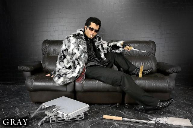 送料無料ポイント2倍 ハーフ丈ファーコート グレー 服 ホスト オラオラ系 悪羅悪羅系 ヤクザ ヤンキー チョイ悪 チョイワル 派手 メンズ 悪党の店 バースジャパン BIRTHJAPAN