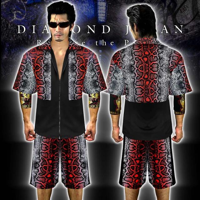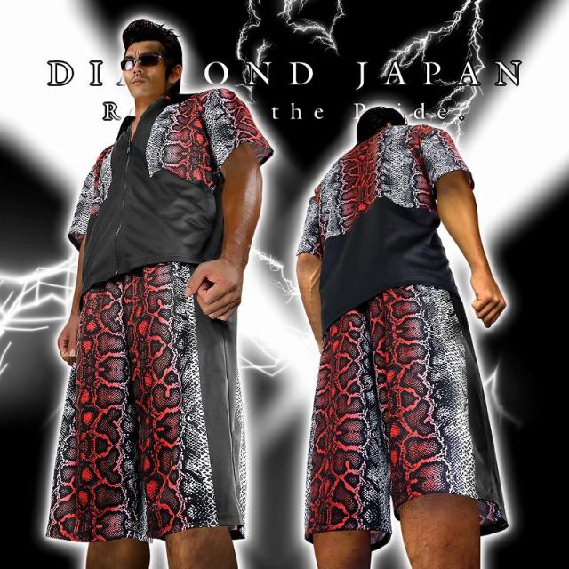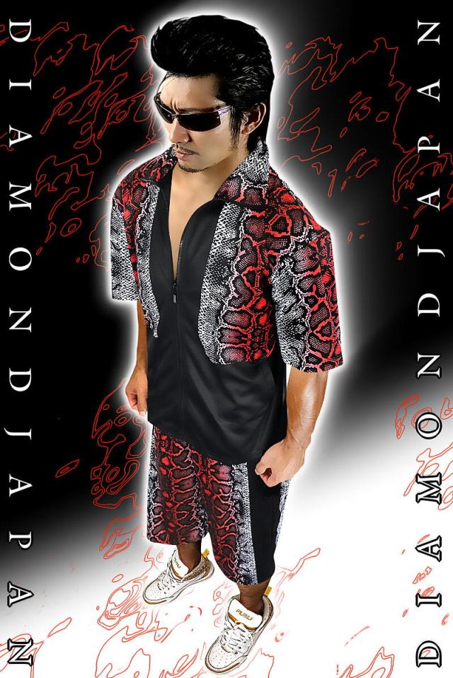 送料無料ポイント2倍 赤蛇 総柄 半袖 セットアップ ジャージ ヤクザ ヤンキー 悪羅悪羅系 オラオラ系 上下 服 DJ-103 派手 夏物 悪党の店 バースジャパン BIRTHJAPAN