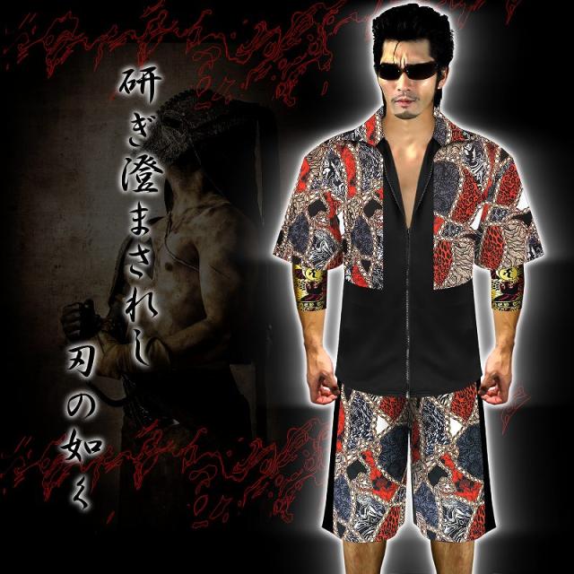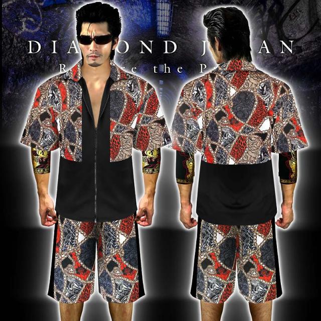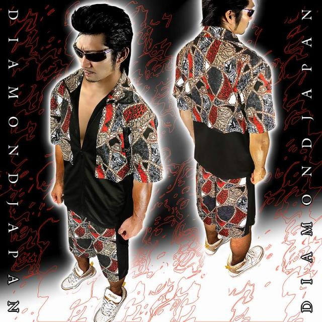 送料無料ポイント2倍 チェーン 総柄 バロック柄 ミックスカラー 半袖 セットアップ ジャージ ヤクザ ヤンキー 悪羅悪羅 オラオラ 上下 服 派手 夏物 悪党の店 バースジャパン BIRTHJAPAN