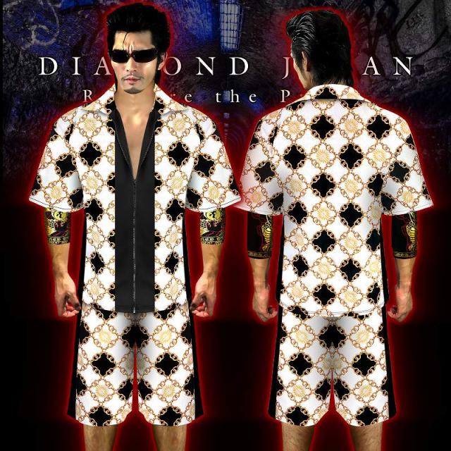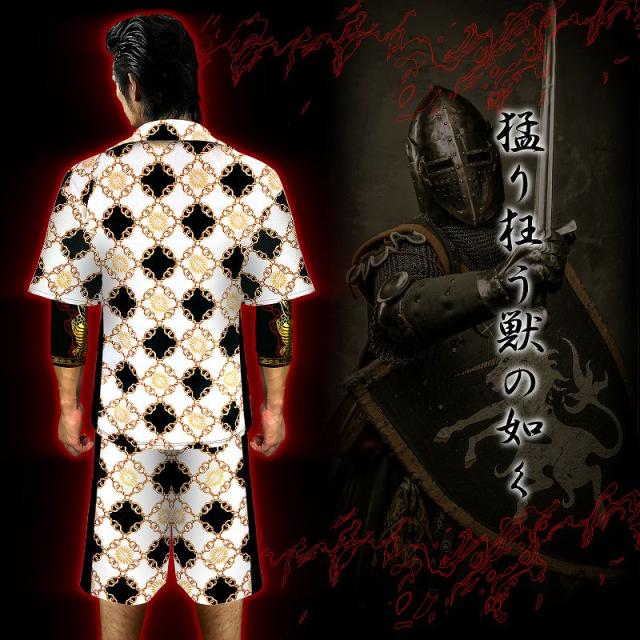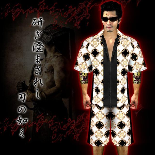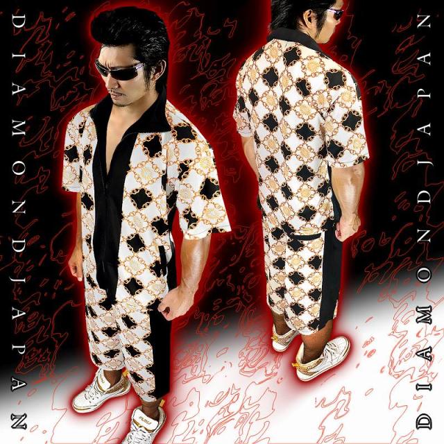 送料無料ポイント2倍 菊紋チェーン 格子柄 総柄 バロック柄 半袖 セットアップ ジャージ ヤクザ ヤンキー 悪羅悪羅系 オラオラ系 上下 服 派手 夏物 悪党の店 バースジャパン BIRTHJAPAN