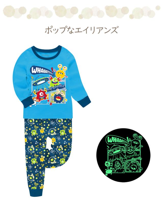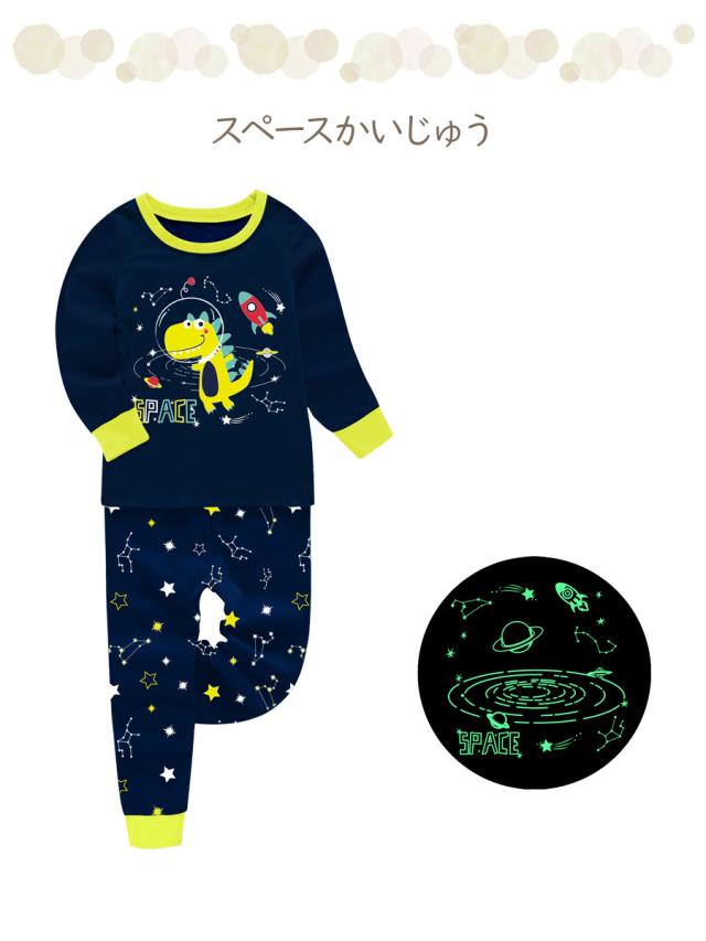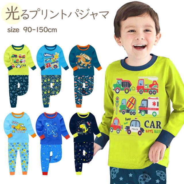 子供服 パジャマ 春 秋 冬 綿 長袖 おしゃれ 男の子 セパレート キッズ ジュニア 部屋着 光る プリント ベビー 100 110 120 130 140 150 送料無料 子供 プレゼント メール便
