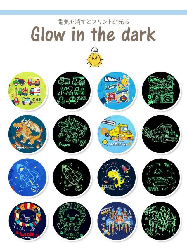 子供に大人気!蓄光プリントが暗闇で光るよ。