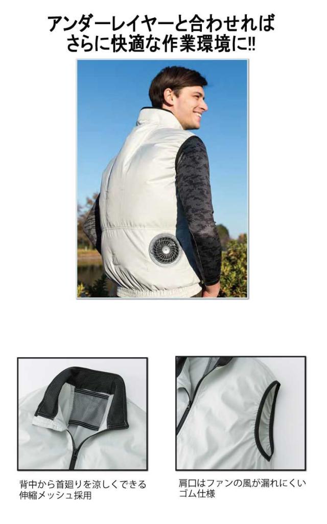 [在庫限り]ファン付き作業着 クロダルマ エアセンサー1 ベスト(ファンなし) 26861