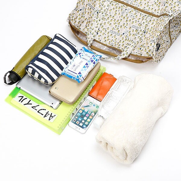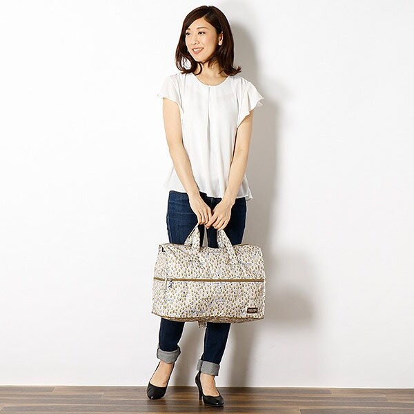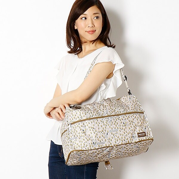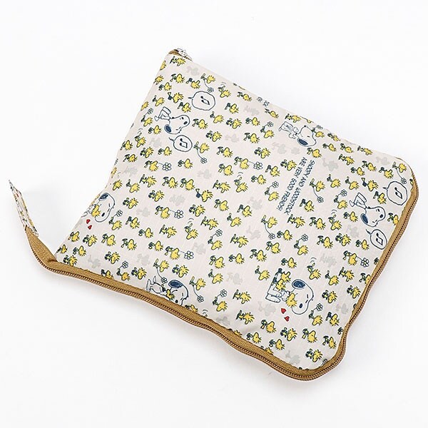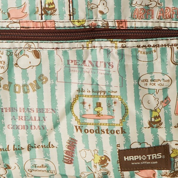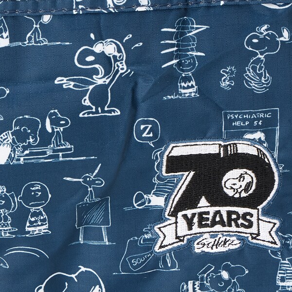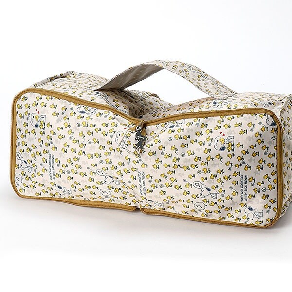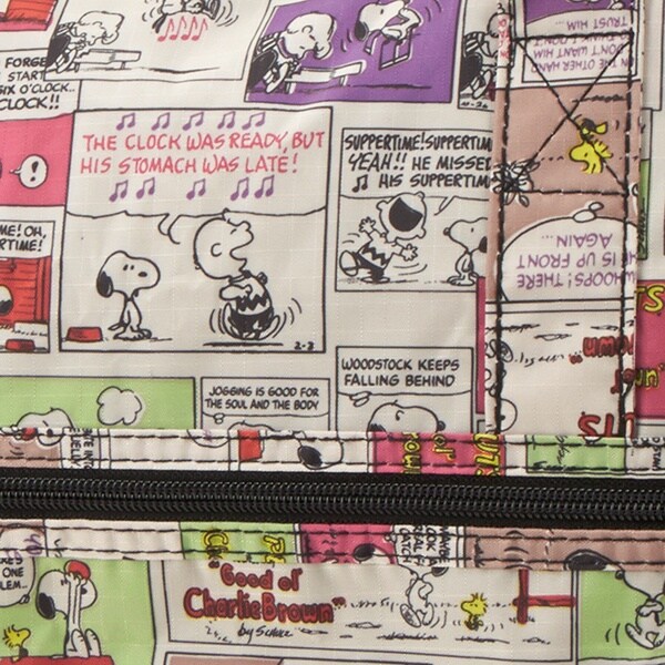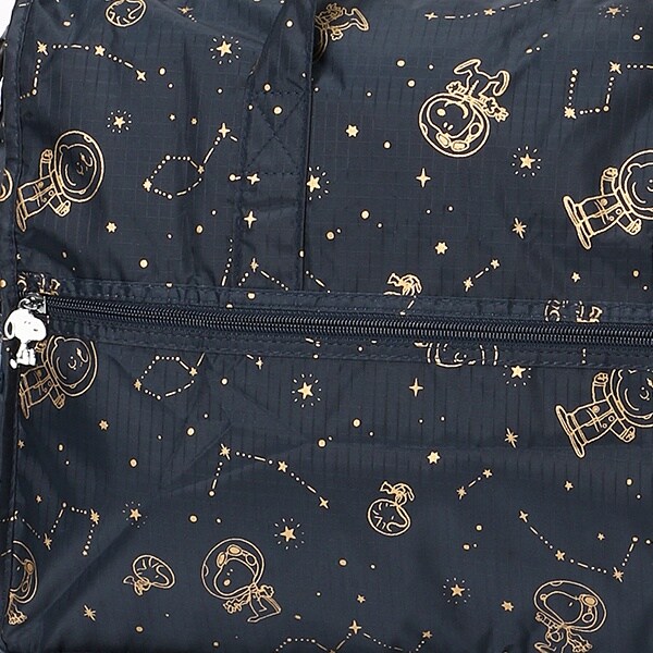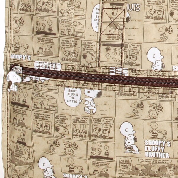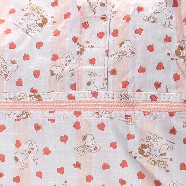小さく持って大きく使える!持ち運ぶ時は折りたたんでコンパクトに♪荷物が増えたらサッと広げて使えます。旅行だけでなく、普段使いのサブバッグやショッピングバッグにもおススメです!スーツケースのキャリーバーに通して持ち運ぶこともできます。ファスナートップ、内装にもこだわり、細部にもスヌーピーの世界を感じることができます。