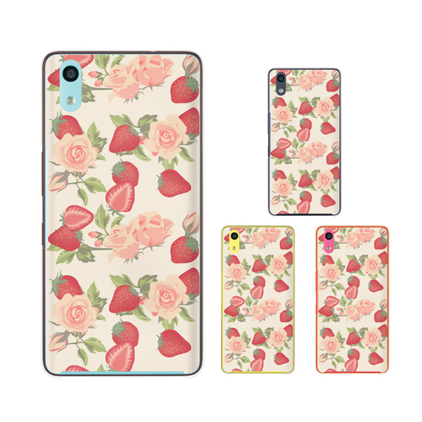 au Qua phone QZ KYV44 スマホ ケース ハード カバー キュアフォン 苺と薔薇 クリーム