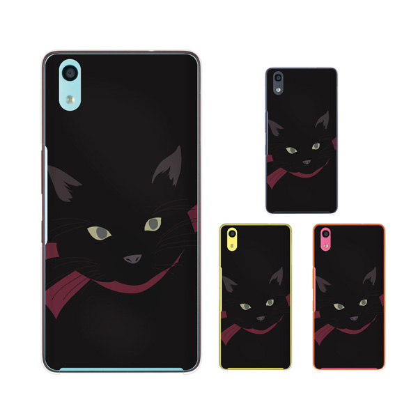 au Qua phone QZ KYV44 スマホ ケース ハード カバー キュアフォン 猫の顔2 リボン 黒