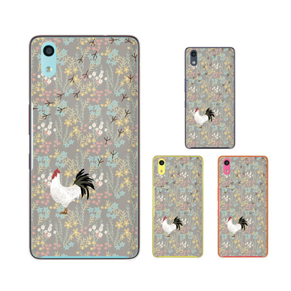 au Qua phone QZ KYV44 スマホ ケース ハード カバー キュアフォン にわとり 小花 茶色