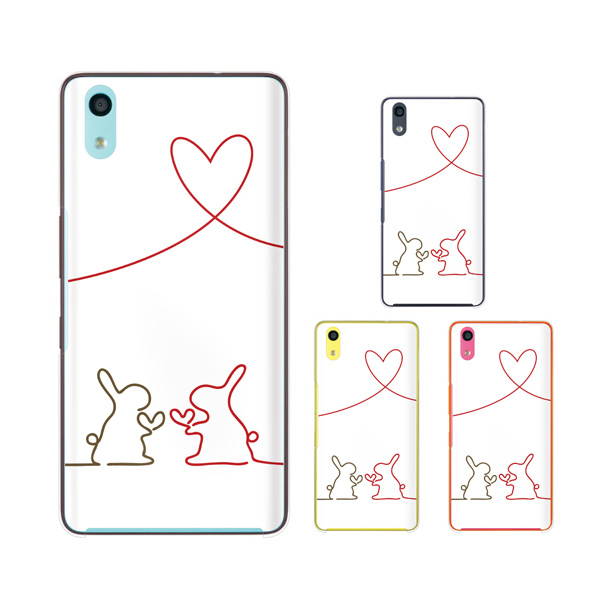au Qua phone QZ KYV44 スマホ ケース ハード カバー キュアフォン うさぎ 糸2 ハート 白