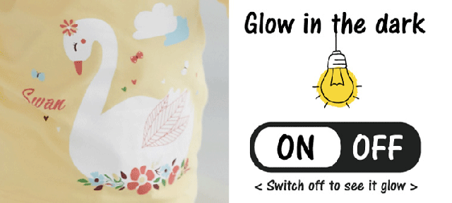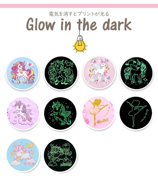 子供に大人気!蓄光プリントが暗闇で光るよ。