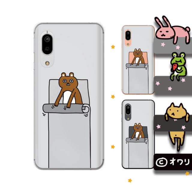 Android One S7 / X1 / X2 / X3 / X5 / S2 / S3 / S4 / S5 / 507SH スマホ ケース カバー オワリ 「巻いているクマ」 グレー