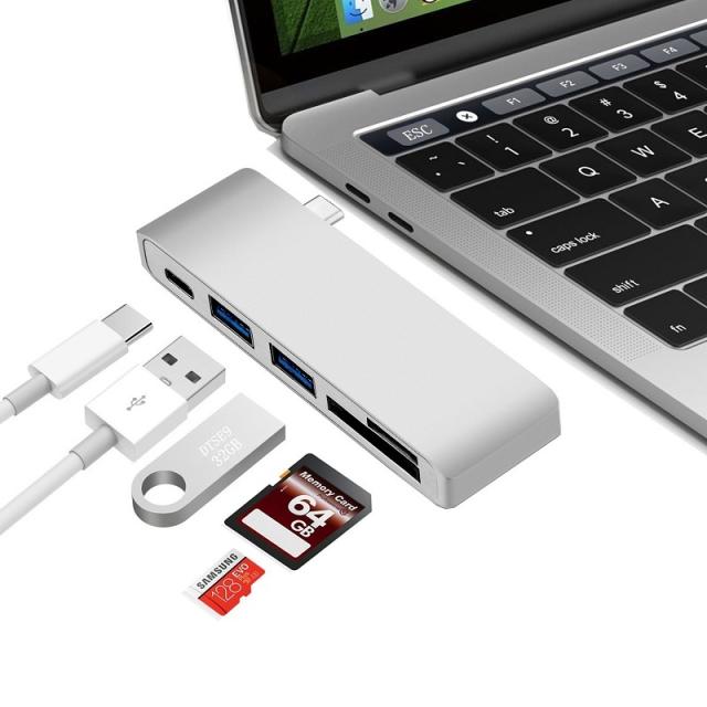 | USB-C カードリーダー&USB3.0×2ポート ハブ付 Cメス給電ポート付 アダプタ |