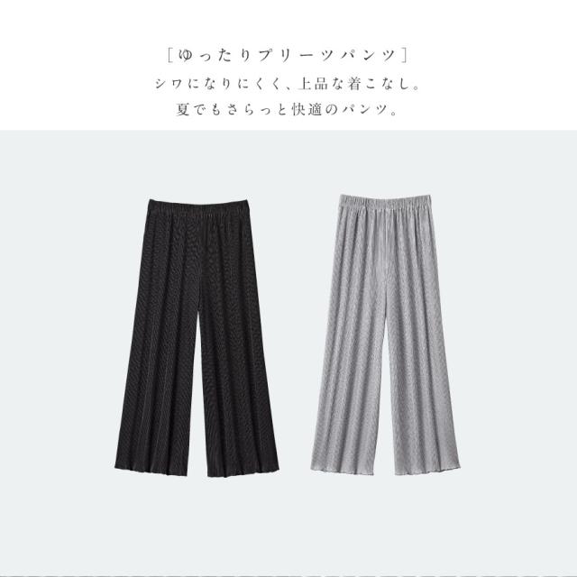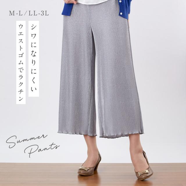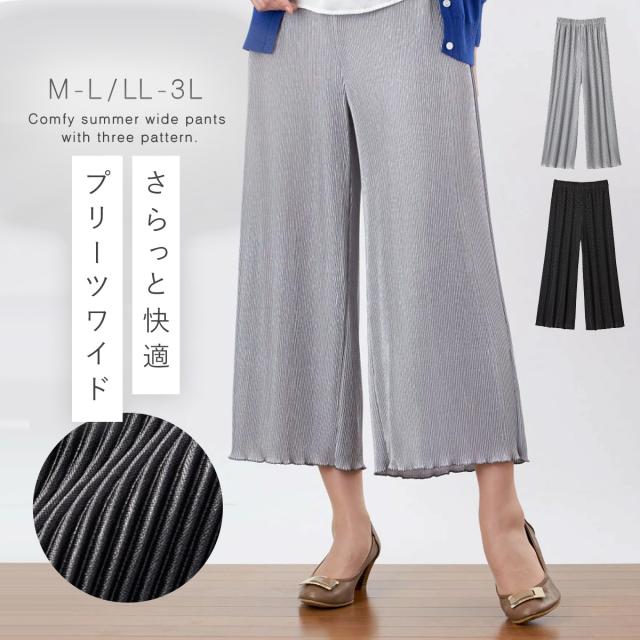 ワイドパンツ,スカーチョ,ガウチョパンツ,キュロット,ガウチョ,パンツ,ズボン,ボトムス,ワイド,プリーツ,春,夏,春夏,股上深め,ウエストゴム,総ゴム,ゴム交換可能,シワになりにくい,旅行,トラベル,着替え,美脚,ブラック,黒,グレー,シンプル,ナチュラル,きれいめ,やわらかい,柔らかい,ソフト,肌触り,ソフトタッチ,快適,心地よい,素材,生地,気持ちいい,涼しい,涼し気,涼しげ,おしゃれ,お洒落,オシャレ,かわいい,可愛い,大人かわいい,大人可愛い,ベーシック,定番,ヘビロテ,普段使い,日常使い,デイリーユース,おすすめ,オススメ,人気,M,L,LL,3L,大きいサイズ,大きめ,ゆったり,レディース,女性,ミセス,ウィメンズ,婦人,女性用,婦人用,30代,40代,50代,60代
