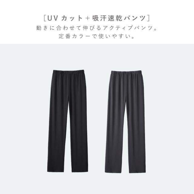 UVカット+吸汗速乾、シンプルデザインで使いやすい。ストレッチ素材で動きやすいアクティブパンツ。