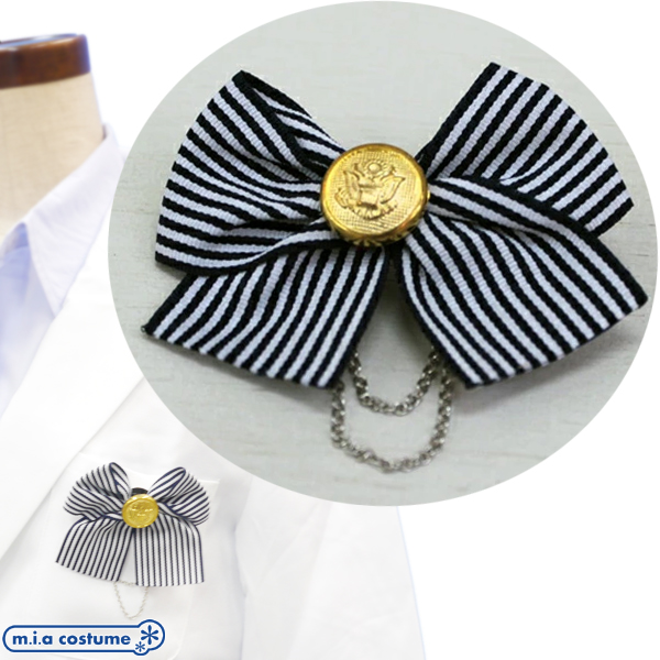 1264D▲【送料無料・即納】 ブローチ ストライプリボン 色:ネイビー