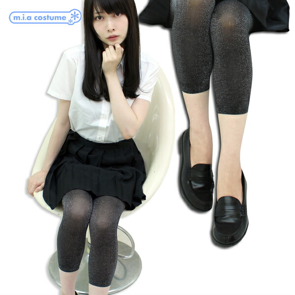 1260B▲【送料無料・即納】 TKF 50デニール ラメ入りレギンス 8分丈 色:クロ×シルバー サイズ:M~L